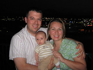 Levi had his "Two Month" appointment yesterday. He weighed 11 pounds, 5 ounces (28th percentile) and 24.25 inches long (85th percentile) putting him at the less than 5th percentile for weight-to-height ratio (translation: long & lean; perfectly fine per his pediatrician). His head circumference is 41 cm (60th percentile). Right on track! Way to go Levi! :-)As all you parents know, these early appointments are mostly for those dreaded immunization shots. I had to watch my little boy get stabbed with 4 needles (2 on each thigh) AND drink the Rotavirus vaccine! Two nurses each gave 2 shots at the same time. I've never seen his face turn so red before!! It scared me, and I hurt for him. It was definitely difficult to watch as a parent, but as a doctor, I knew the pain from the shot would be out of his memory by the time we got into the car. I wasn't, however, completely prepared for that night. The Rotavirus vaccine gave him gas pains, he was clearly sore, especially in his legs, fatigued, and he had a mild fever (100.6). He was so pitiful, crying looking at me with his big eyes, and not moving his legs like he always does. It broke my heart and brought me to tears. There we were, both crying together. Poor Dustin had to comfort the both of us. All I have to say is, thank goodness for baby Tylenol.